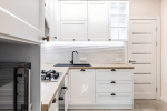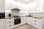 • Спасибо огромное за новую кухонную мебель! Аккуратную, белую в глянце, с фартуком и столешницей под натуральное дерево. Мы давно планировали угловой гарнитур и очень рады, что вы нас не подвели. Успеха всем вам и процветания! Полина